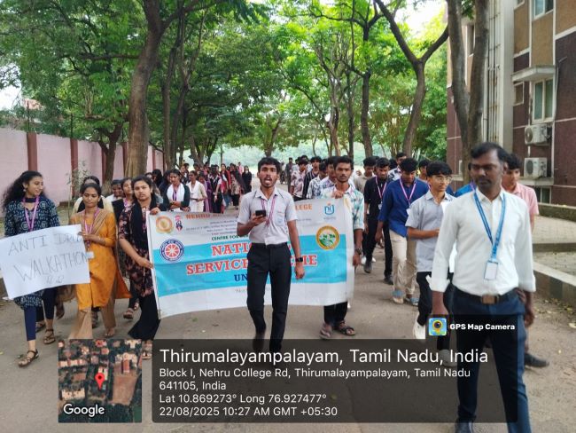 πΆββοΈ Anti-Drug Walkathon 2025 Organised by National Service Scheme (NSS) β Nehru Arts and Science College Date: 22nd August 2025 Venue: NGI Campus, Coimbatore The National Service Scheme (NSS) of Nehru Arts and Science College (NASC) proudly organized an Anti-Drug Walkathon on 22nd August 2025. The event aimed at spreading awareness about the harmful effects...Read More